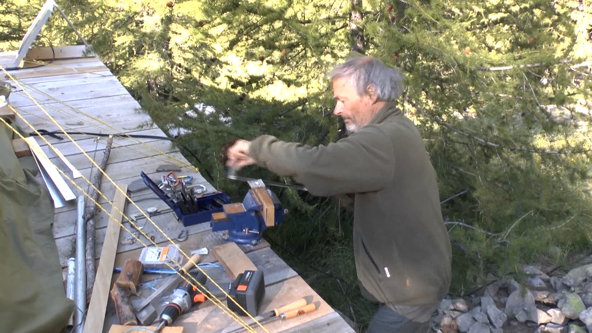 Réparation de l'interrupteur de déclenchement du flash aviation au niveau de l'ancrage nord du câble porteur (J.-P. Rochaix) 2012-©MR |