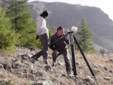 Martine Roussel filmant la manipulation de la nacelle, à droite les moteurs du point est ©AL |