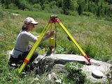 | Calage de la station de référence du GPS RTK sur un repère IGN (M. Roussel) 2012©JM |