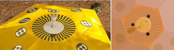 In antique Babylon, people already used the projected shadow of a stick fixed in the ground to determine the hour. Dozens of centuries later, InSight is going to employ this technique on the red planet. At the top of the copper-colored hexagonal thermal protection ( RWEB) which surrounds the seismometer SEIS is actually a test pattern, in the center of which is situated the gnomon, which allowed the deployment of the instrument the ground.