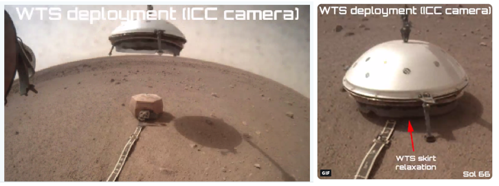 La jupe a déjà commencé à se relaxer ! A noter que la dépose du WTS est une opération complexe, et les équipes analysent un grand nombre de données (position du WTS par rapport au sismomètre, performance thermique du bouclier, niveau de bruit sous cloche, etc.).