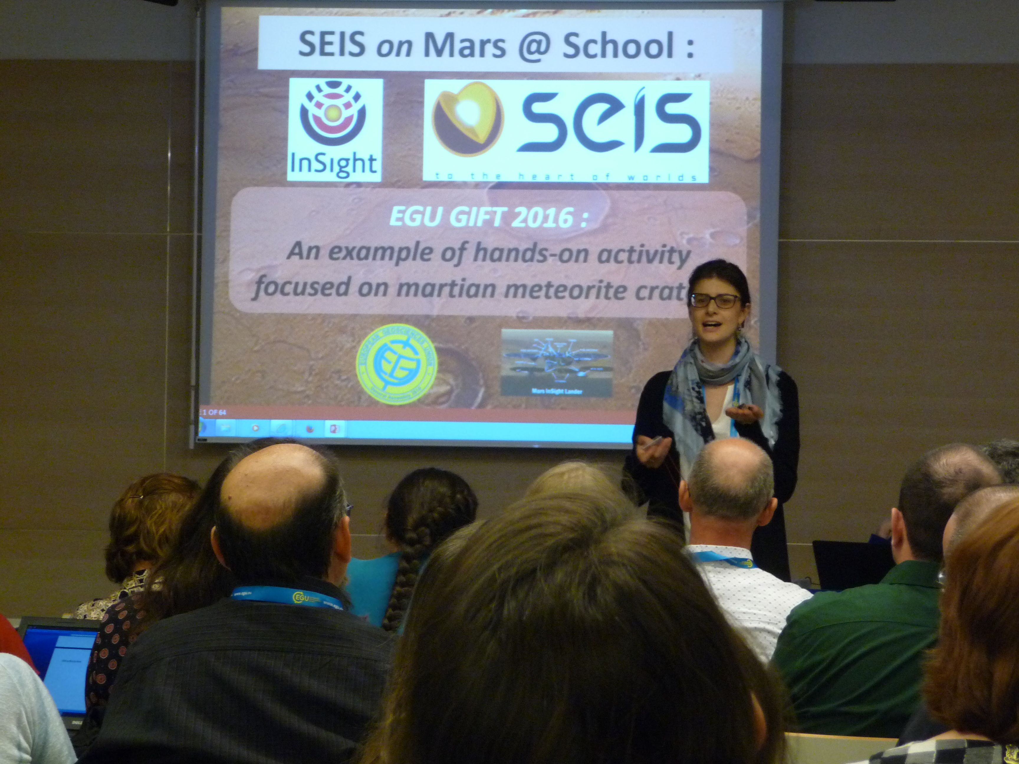Le séminaire organisé chaque année dans le cadre du confrès de l'EGU (European Geoscience Union) pour les enseignants européens (GIFT : Geoscience Information for Teachers) a porté sur le système solaire. Une session spécifique a été réservée aur la planète Mars et la prochaine mission InSIGHT.