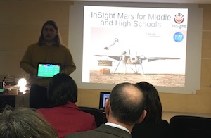 Les enseignants ont pu découvrir la mission InSIGHT et le volet Education de la mission à partir d'une conférence de Philippe Lognonné (Principal Investigator de l'expérimentation SEIS), de posters présentés par Diane Carre et Aurélien Roques (Enseignants) et d'un atelier de pratique autour des impacts de météorites animé par Diane Carrer.